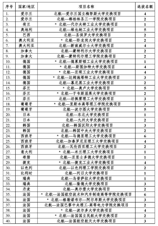 此次发布的项目中,北航—代尔夫特工业大学交换项目等17个项目为国家留学基金委“优秀本科生国际交流项目”资助,入选此类项目的学生的往返国际旅费及在外生活费由国家留学基金委提供全额奖学金资助。其它学生交换项目由我校“远航基金”提供部分奖学金资助。