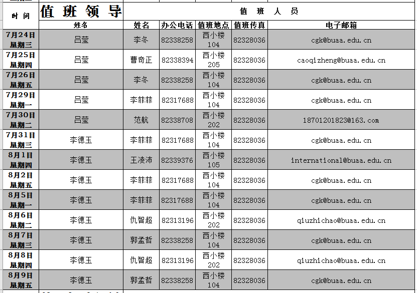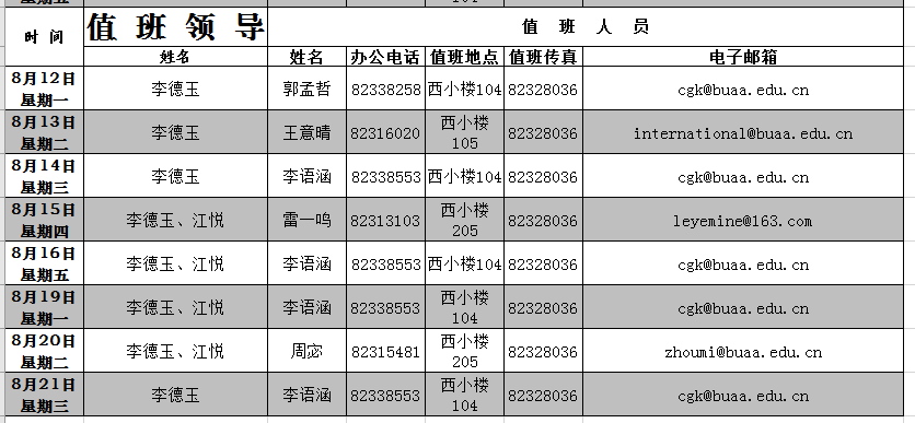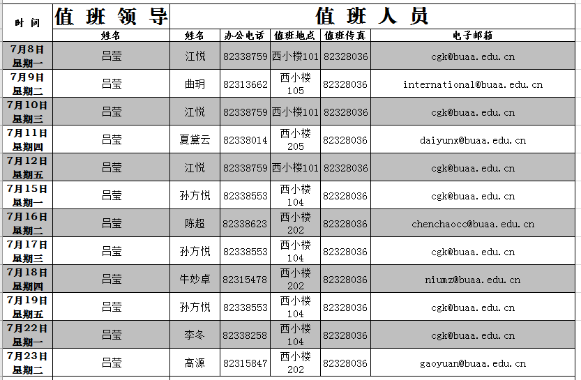 出国出境科值班日期为每周一、三、五。