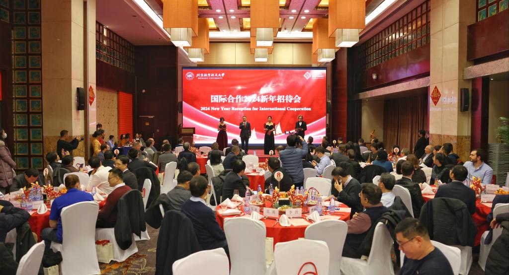 1月10日,北航国际合作2024新年招待会在唯实国际文化交流中心举办。工业和信息化部国际合作司、军民融合推进司,国家航天局,亚太空间合作组织等相关单位领导和人员、合作伙伴代表,北航校长王云鹏院士,副校长黄海军、吕卫锋、赵巍胜,北航中欧合作委员会委员代表、外籍专家学者代表、“远航计划”学生与国际学生代表,相关教学科研单位、党政机关、服务支撑机构代表等170余人,欢聚一堂,共贺新年。