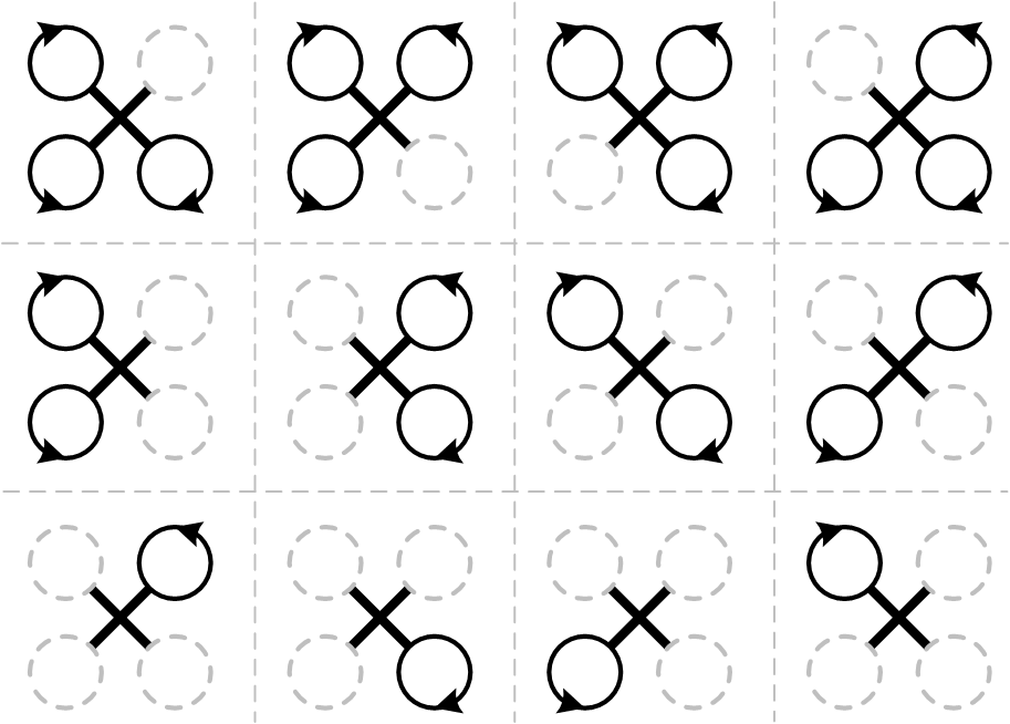 究其根本、溯其源头,团队选择回归到最原始的飞行状态寻求解决方案。正如陀螺转动是旋转前行,当部分旋翼发生故障停滞不前时,飞行器的平衡被打破,也会进入旋转状态。如若顺势而为,不去检测、诊断复杂多变的故障情形,而是依靠剩余旋翼维持稳定的旋转状态,从而实现像陀螺一般飞行。