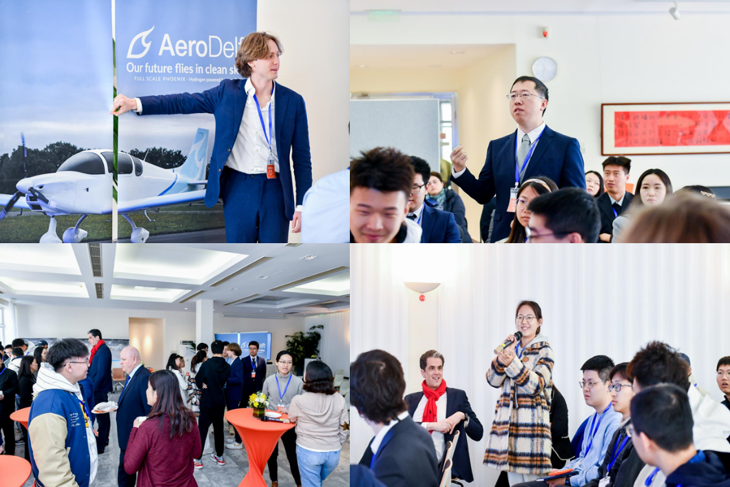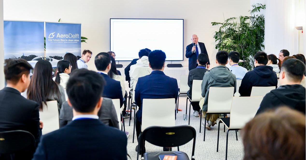 荷兰皇家航空公司(KLM)大中华区首席执行官Wouter Vermeulen首先介绍了KLM在绿色航空领域采取的举措,着重介绍了公司在减少环境影响及推动可持续航空旅行方面做出的努力。来自荷兰代尔夫特理工大学的AeroDelft学生团队随后展示了他们在氢动力航空方面的开创性工作,分享了关于氢能源如何为航空业提供清洁、可持续能源的见解,并介绍了团队正在开发的氢能源飞机项目。北航航空学院学生代表介绍了中国公共交通的发展以及新能源技术的应用进展。航空学院飞机系本科教学副主任、北航航模队指导教师宋磊副教授就北航与荷兰高校间的交流互动特别是航空领域互动交流提出了展望。