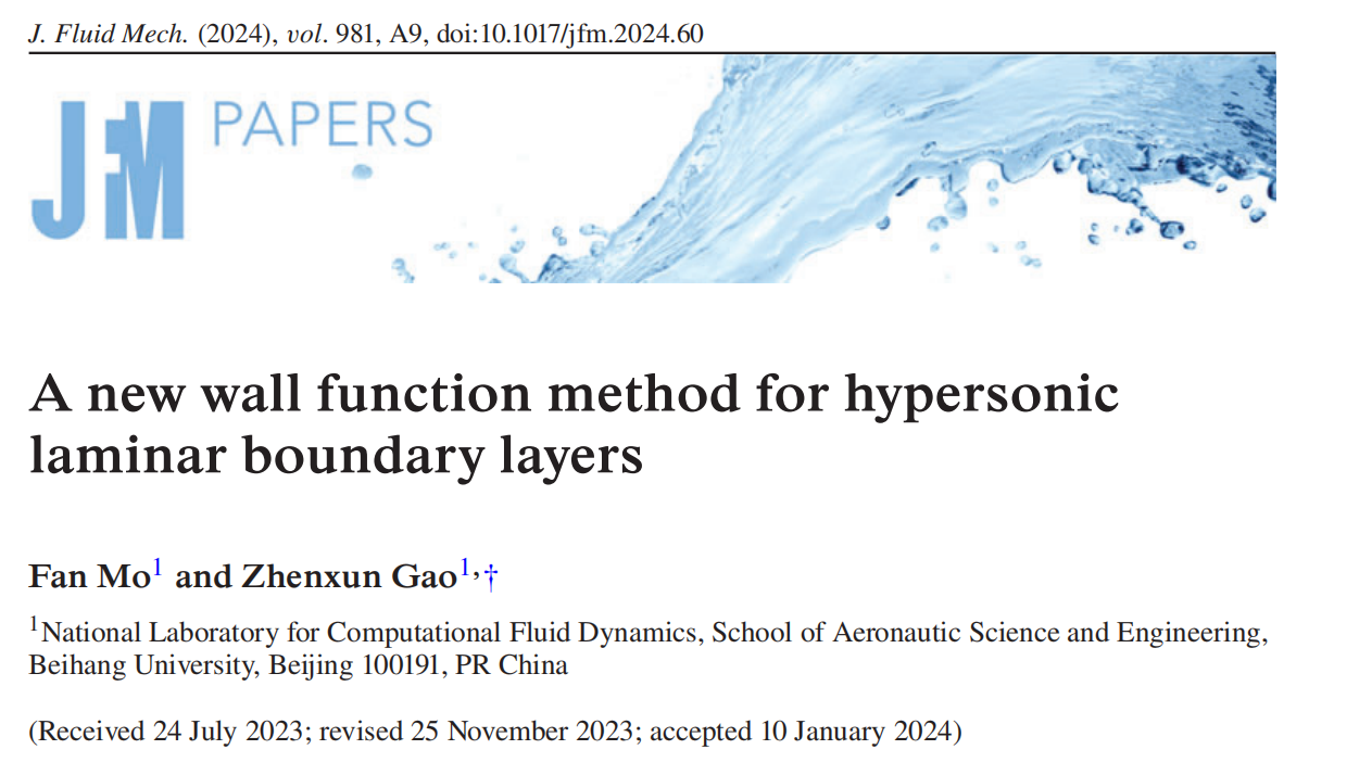 近日,航空科学与工程学院高振勋教授研究团队在高超声速边界层气动力/热CFD模拟方法方面取得重要研究进展。研究成果发表在流体力学国际权威期刊Journal of Fluid Mechanics,本文的第一作者为航空学院2021级博士生莫凡,通讯作者为高振勋教授,研究受到了国家自然科学基金和中央高校基本科研业务费的支持。