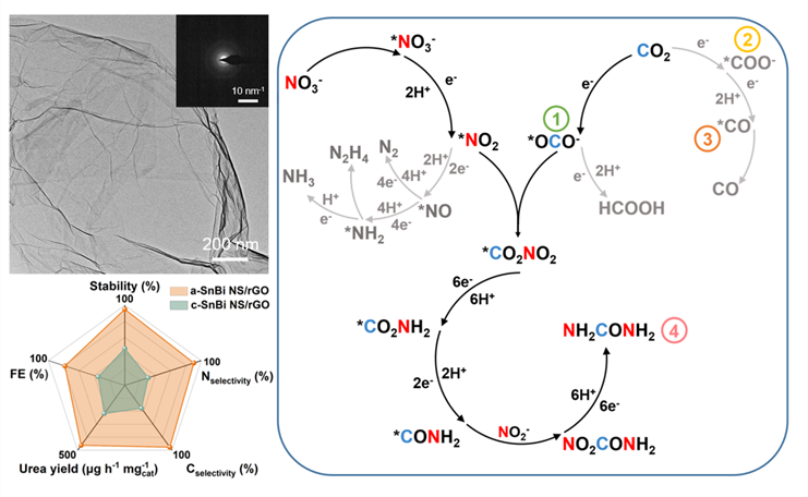 图:非晶氧化铋锡/rGO纳米片的性能及催化机理