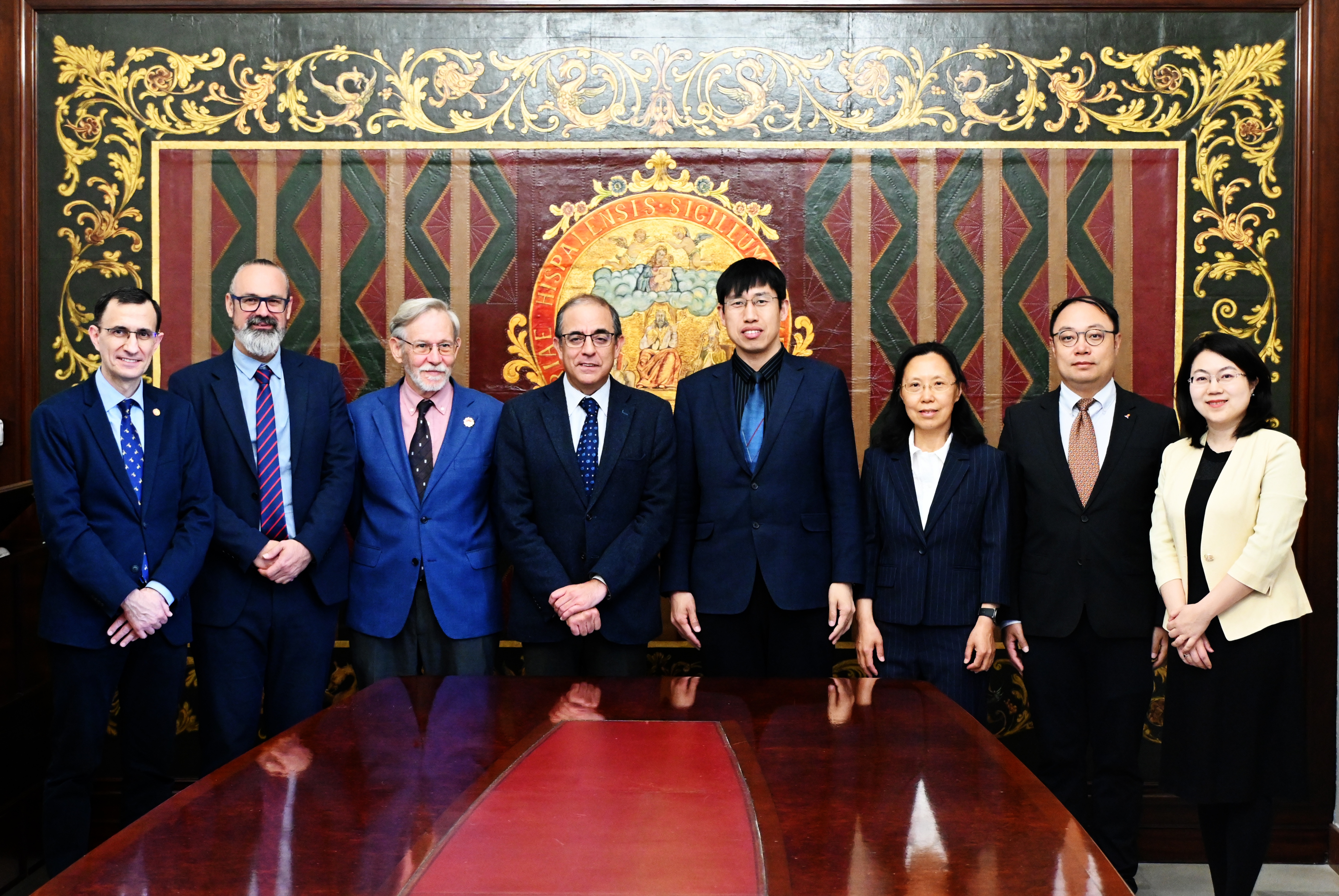 在塞维利亚大学,代表团会见了塞维利亚大学校长米格尔·安赫尔·卡斯特罗(Miguel Ángel CASTRO)、国际处处长、IEEE Fellow何塞·德拉罗沙(José M. de la ROSA)、国际战略办公室主任安吉尔·路易斯(Ángel Luis TRIGO),双方就建立双学位项目、拓展教授间科研合作等开展研讨,达成重要共识。