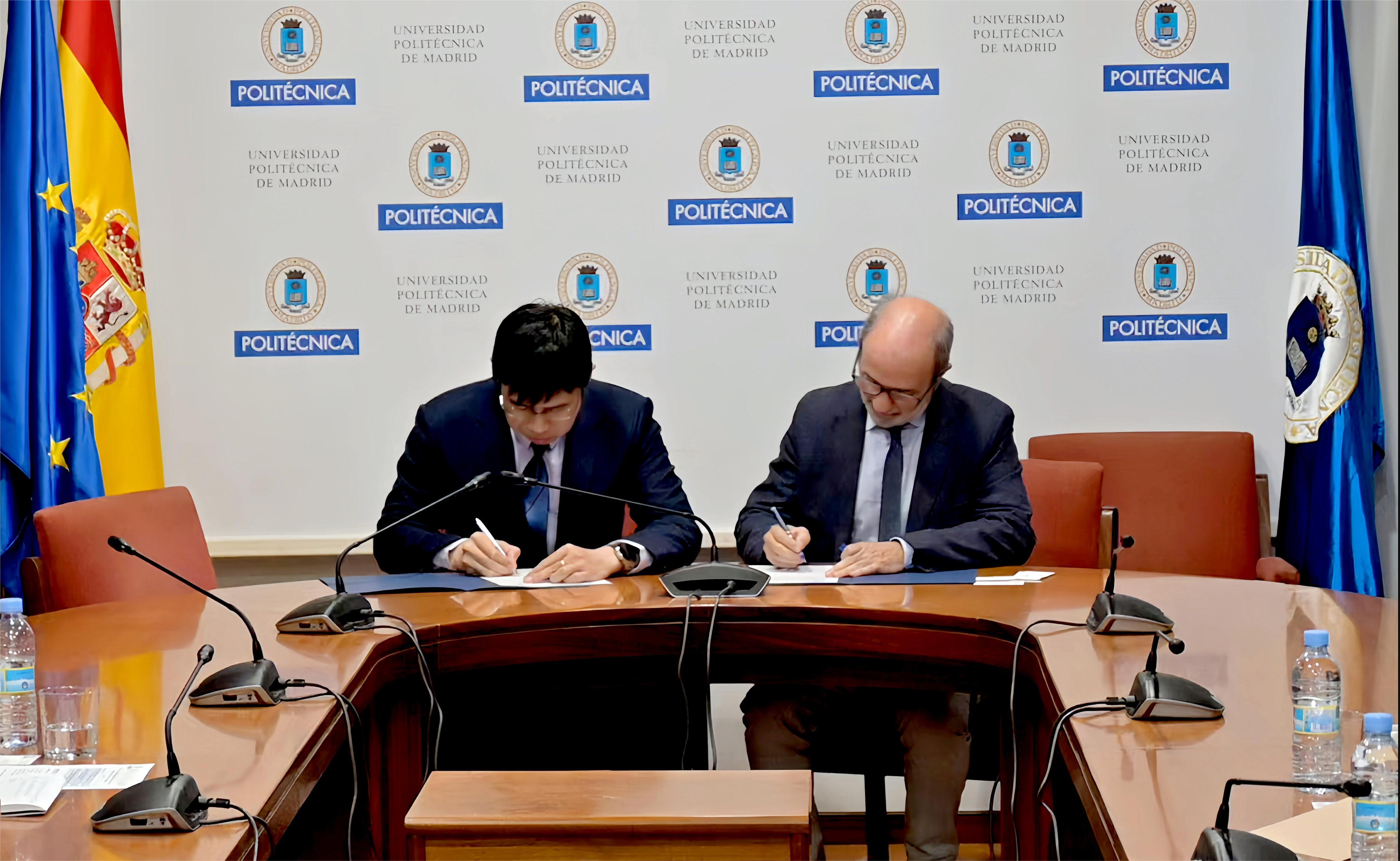 在马德里理工大学(UPM),赵巍胜一行会见了社会理事会主席胡里奥·拉赫(Julio LAGE)、外事副校长路易斯·里科特(Luis RICOTE)等,双方签署战略合作意向书,并就拓展双学位项目、全面加强校际合作等议题进行深入研讨。