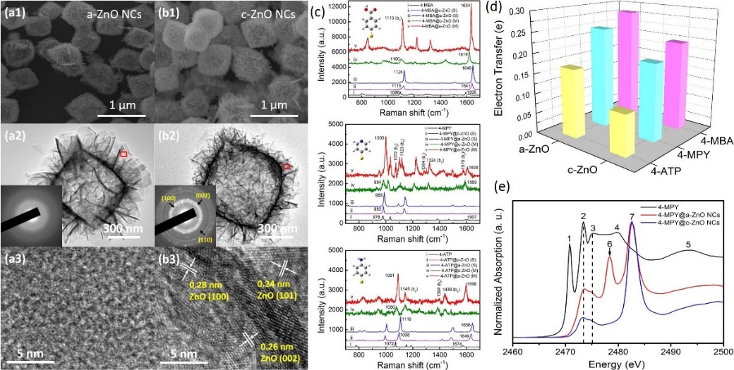 图2.非晶态及结晶态ZnO纳米笼的SERS性能