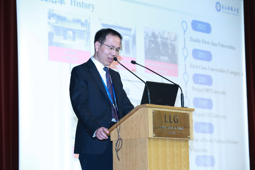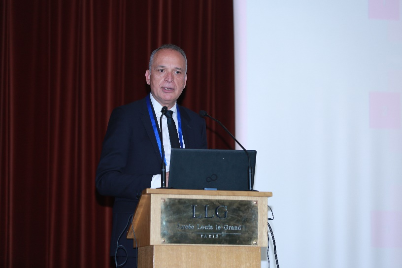法国国立应用科学学院集团主席穆拉德·布哈法(Mourad BOUKHALFA)作“INSA集团与数字和生态转型:从教学科学变化到国际项目融合” 主旨报告