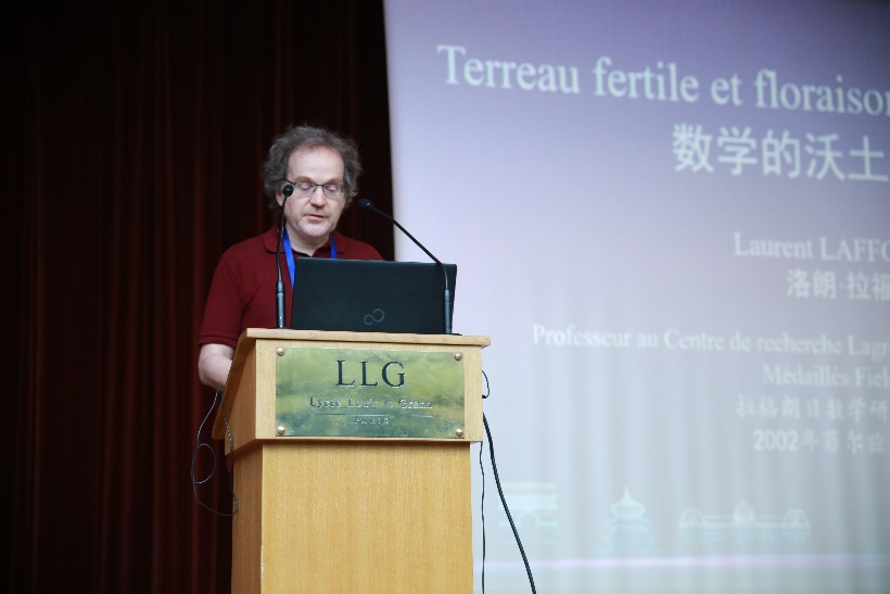 拉格朗日数学研究所教授、2002年菲尔兹奖获得者洛朗·拉福格(Laurent LAFFORGUE) 作“数学的沃土与绽放”主旨报告