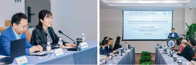 北航国新院医工交叉科创中心主任王丽珍代表北航生物与医学工程学院及北航国新院医工交叉科创中心,向各位到场的专家学者表示热烈欢迎,并介绍了医工交叉科创中心的发展情况及教师团队的建设情况。王丽珍表示,北航国新院医工交叉科创中心在医工交叉国际化人才培养和服务浙江高端医疗器械与装备产业等方面发挥着重要作用。