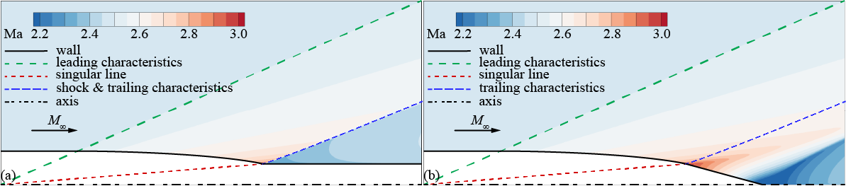 图2 两种不同构型下超声速绕流形成的锥形膨胀解