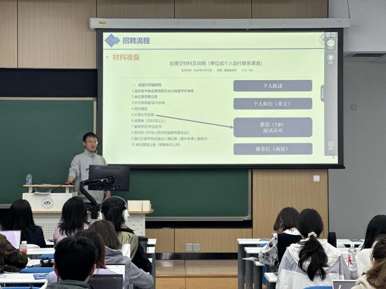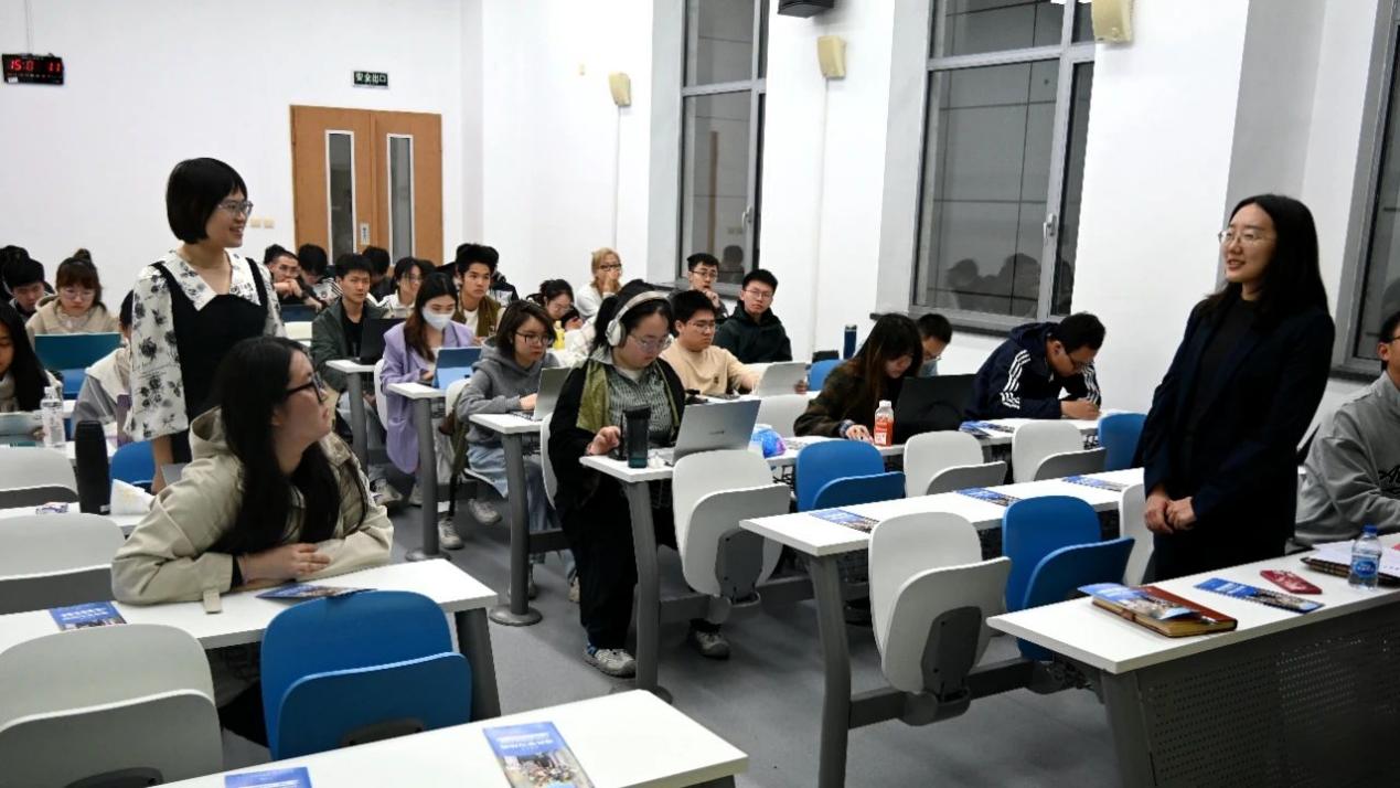 在问答环节,现场同学们围绕国际组织申请策略、语言能力提升、科研与实习的平衡等问题展开热烈讨论。两位嘉宾结合自身经历,建议有志于国际组织实习的同学提前规划职业路径,积极参与国际交流活动,并在日常学习中注重英语专业表达能力的培养。分享会结束后,许多同学仍留在现场与两位主讲嘉宾深入交流,探讨职业发展的可能性。