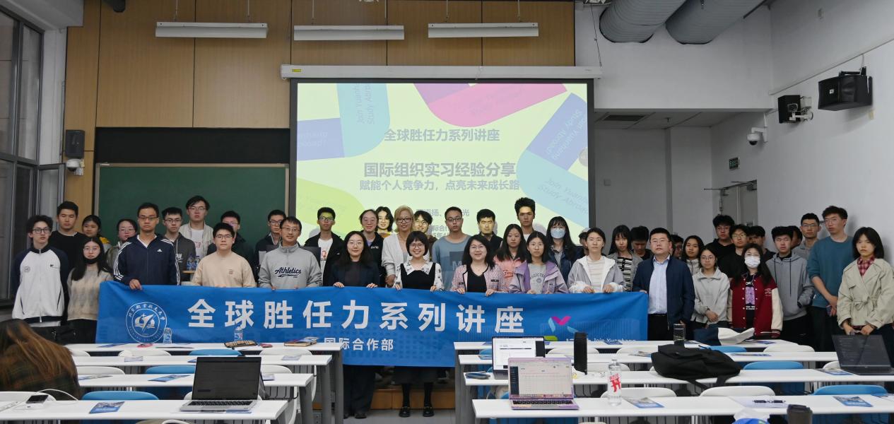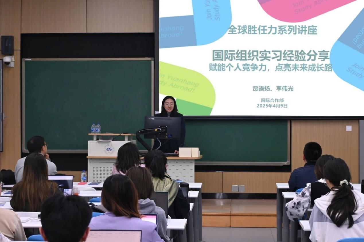 2025年4月9日下午,由北京欧美大片ppt免费大全国际合作部主办的“全球胜任力系列讲座第十讲《赋能个人竞争力,点亮未来成长路——国际组织实习经验分享》在学院路校区新主楼C102成功举办。本次讲座邀请到两位具有丰富国际组织实习经历的我校师生贾语扬老师与李伟光同学担任主讲嘉宾,分别围绕他们在国际民航组织(ICAO)和国际原子能机构(IAEA)的实习经历展开分享,为同学们带来了一场兼具实践指导与职业启发的精彩活动。国际合作部副部长万丽娜主持并作开场。