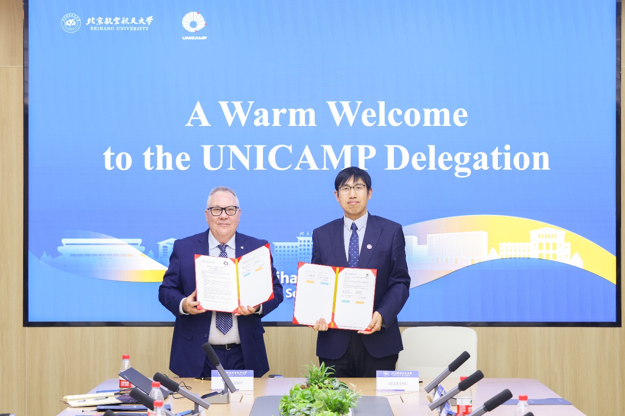 蒙塔涅尔对北航的热情接待表示感谢。他表示,坎皮纳斯州立大学是对华合作最多的巴西高校之一,学校高度重视跟中国高校、企业的合作,今年刚成立了中国研究院。北航“包容、创新、协同”的国际化办学理念与坎皮纳斯州立大学发展战略高度契合,未来两校将在科学研究、学生联合培养、体育文化交流等方面开展更深入合作。